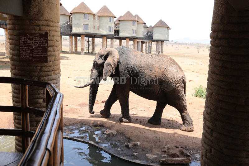 A wild elephant moves around the Sarova Taita Salt Lick Lodge in Taita Taveta County. [Photo by Maarufu Mohamed/Standard]