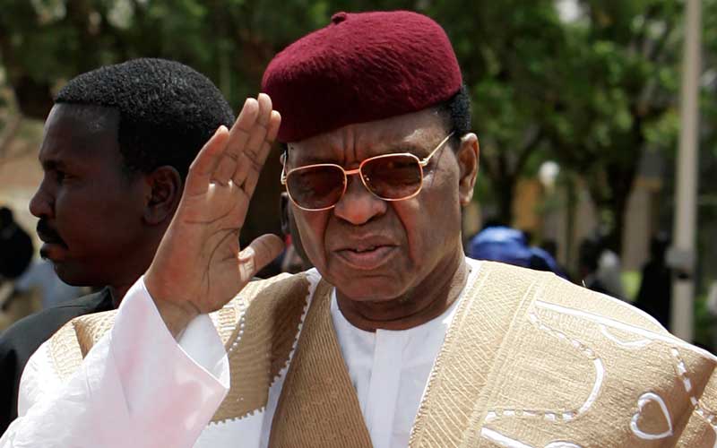 In this file photo taken on March 27, 2009, then Niger's President Mamadou Tandja waves upon French President's arrival at Diori Hamani airport in Niamey. Tandja passed away on November 24, 2020. [AFP]