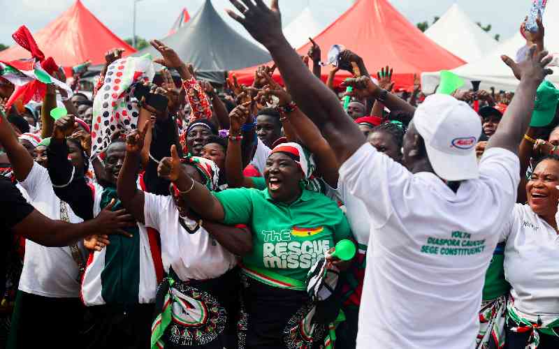 Supporters of former Ghana president and presidential candidate for the National Democratic Congress (NDC) John Dramani Mahama gather during the party's manifesto's launch ahead of the 2024 Presidential Elections in Winneba, Ghana, on August 24, 2024. [AFP]
