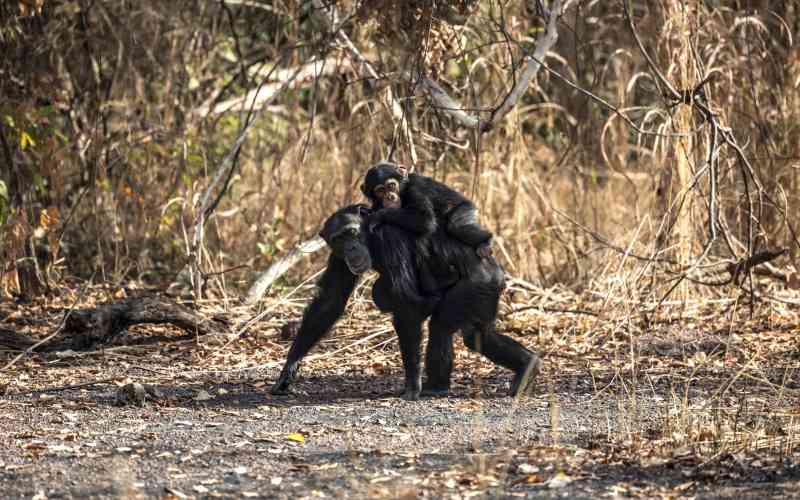 On a recent morning, Mike, a charismatic, middle-aged chimp, ambled along the savannah floor, baobab fruit dangling by a stem from his mouth -- a snack for later -- as Sadiakhou watched.