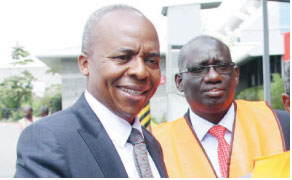 | Transport and Infrastructure Cabinet Secretary Michael Kamau (left) during earlier visit to Jomo Kenyatta International Airport. [PICTURE: FILE] |