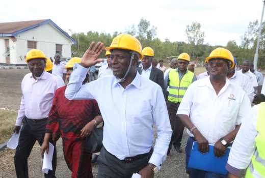 Energy and Petroleum Cabinet Secretary Charles Keter (Center) during a tour at Sondu Miriu hydroelectric power station on February 15th 2017 to inspect the dams water levels in light of the current drought situation being experienced in most parts of the country. (Collins Oduor, Standard)