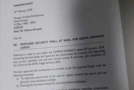 Kenya Airways has written to the Kenya Civil Aviation Authority over new airline’s operations at its former warehouse [Courtesy]