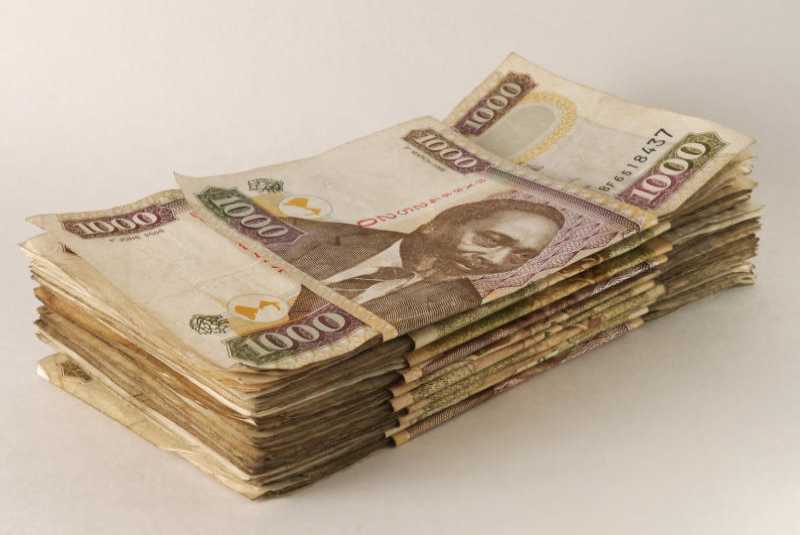 Kenyan Shillings: stack of 10 x 10 x 1,000 notes; the highest denomination in Kenya, total 100,000 shillings, or "bob" in Kenyan slang. the first president kenyatta can be seen on the notes. [Photo/Courtesy]
