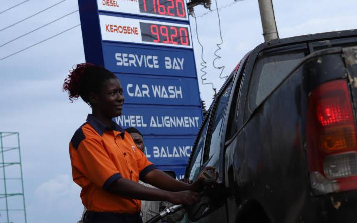 Pump attendant serves a vehicle at a fueling station in Kisumu on September 02,2018. Fuel prices that have gone up are likely to affect transport costs across the country. [Photo: Denish Ochieng/ Standard]