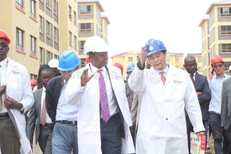 Machakos Governor Alfred Mutua (right) and Erdemann Property Chief Executive Zeyun Yang, during the commissioning of phase 3 of the low cost houses in Athi River Machakos County. [Peterson Githaiga, Standard]