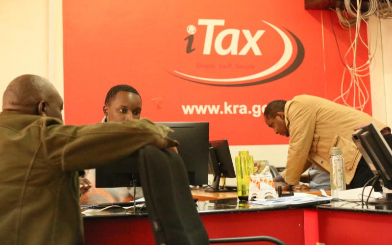 Taxpayers file returns at a KRA support centre. Almost all July taxes went to debt repayment and wages. (Kibata Kihu, Standard)