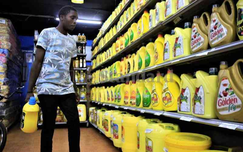 A customer at Khetia Supermaket in Nyeri. The price of cooking oil is expected to go up with new finance law. June 6, 2023. [Kibata Kihu, Standard]