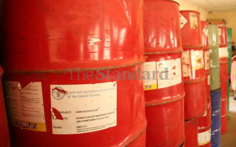 Deltamethrin, Locust Pesticide in Isiolo County at the government offices on February 17, 2021. [David Gichuru, Standard]
