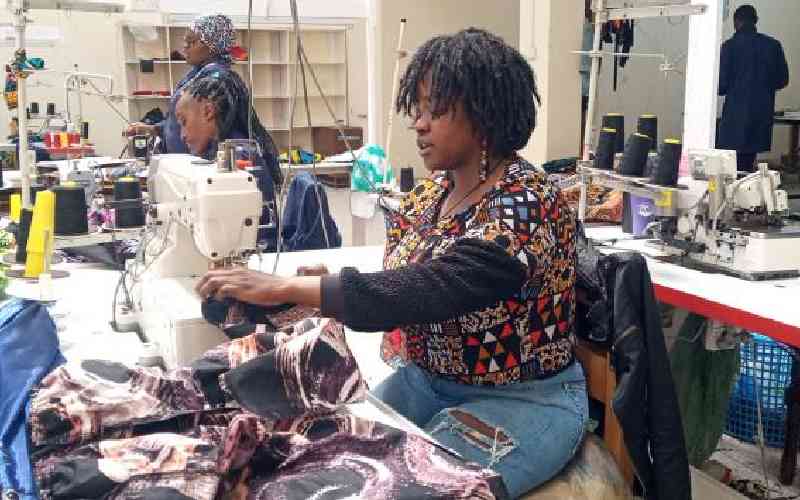 Adriana Juma, at her manufacturing shop along Nakuru-Nairobi high way, she has been making fortune through Ankara sale. [Yvonne Chepkwony, Standard]