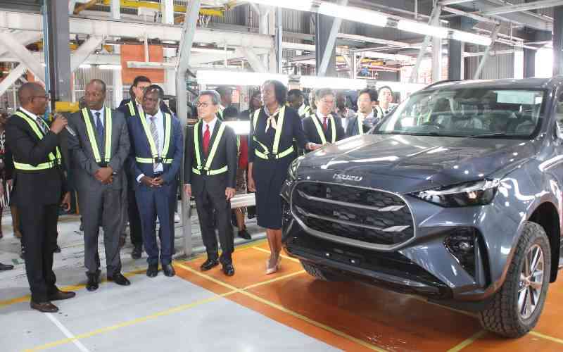 Isuzu East Africa Limited MD Rita Kavashe, Trade CS Lee Kinyanjui, PS Juma Mukhwana and Japan Ambassador to Kenya Hiroshi Matsuura during the launch of the locally assembled Isuzu Mu-X Luxury SUV in Nairobi on February 2, 2026. [Kanyiri Wahito, Standard]