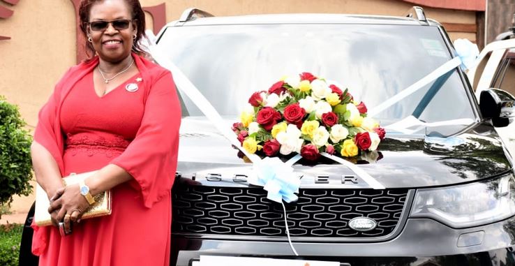 BF Suma Africa continent's top leader Amb. Susan Onyancha savours her new 2020 Discovery car that she won during this year's company car award ceremony in Nairobi.