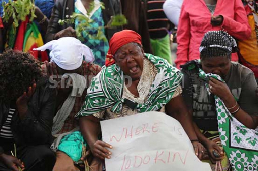 Residents of Churo Amaya ward in Tiaty Sub-county mourn the death of their MCA Thomas Minito. The residents protest to demand action by the police following the killing. [Photo:Kipsang Joseph, Standard]