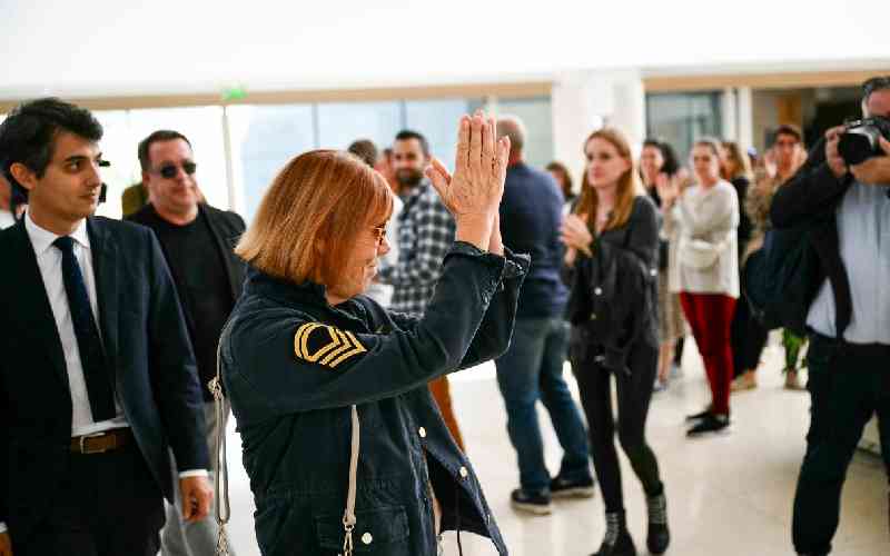 Gisele Pelicot (c), flanked by her lawyer Stephane Babonneau (L), is applauded by members of the public as she leaves the courthouse of Avignon during the trial of her former husband Dominique Pelicot accused of drugging her for nearly ten years and inviting strangers to rape her at their home in Mazan, a small town in the south of France, in Avignon, on September 23, 2024. [AFP]