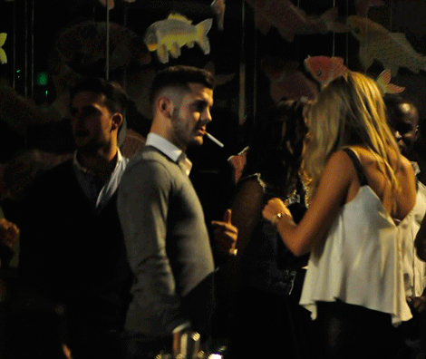 | The England footballer spotted chatting up a mystery woman and smoking outside Dstrkt Club in London |