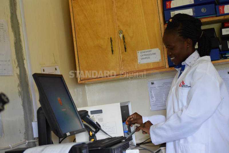 A community health worker handles a GeneXpert at Kojowi Health Center in Ndhiwa, Homa Bay County. [James Omoro/Standard]