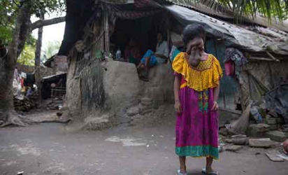 Khadija Khatoon, 21, has a mass of skin hanging from her forehead and no eyes or nose - just a small slit.