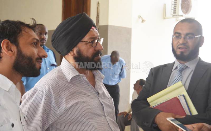 Joginder Singh Dhanjal (left) with his lawyer Khalid Salim at the Mombasa Law Courts in November 2018. [Kelvin Karani, Standard]