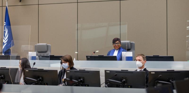 Judge Miatta Maria Samba of Trial Chamber III at the opening of the trial in the Gicheru case at the ICC in The Hague (Netherlands) on February 15, 2022 [ICC-CPI]