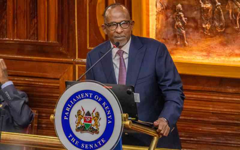 Health CS Aden Duale answers questions on the floor of the Senate at the Chambers, Parliament on April 22,2026 [Elvis Ogina, Standard]