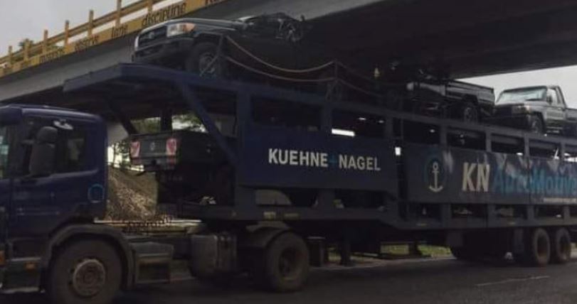Three motor vehicles were extensively damaged after a driver of a trailer transporting them to a dealer in Nyeri under-estimated the height of a bridge in Murang’a.