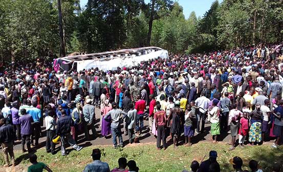 A crowd gathers at the scene of the accident involving St Mary's Nyamagwa Girls school bus. (Photo: Eric Abuga/Standard)