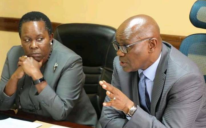 Kisii Governor James Ongwae(right) and Kisii High Court Presiding Judge Lady Justice Rose Ougo when the Judge paid a courtesy call on the governor in his office. [File, Standard]