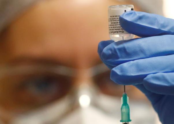 A member of a German Red Cross mobile vaccination team prepares the Pfizer-BioNTech COVID-19 vaccine. [Reuters]