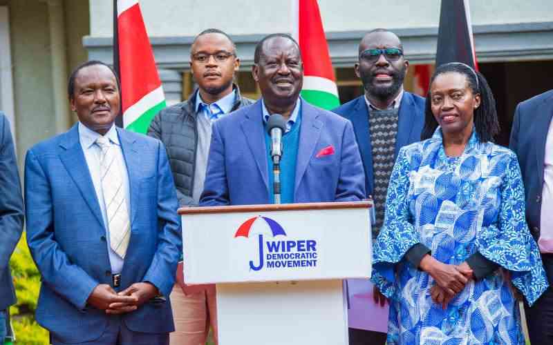 Azimio la Umoja leaders at SKM Center in Karen, Nairobi. [Emmanuel Wanson, Standard]