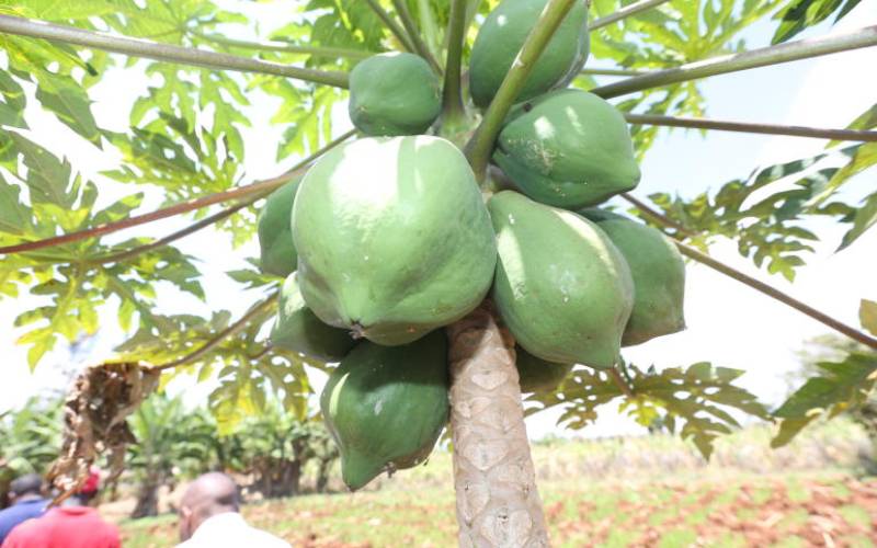 Zakayo Nyamu's paw paw fruits at small piece of land in Kirinyaga county.This was on 3rd October 2018.[Edward Kiplimo,Standard]