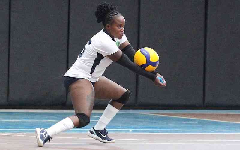 KCB Bank's Lincy Jeruto during Kenya Volleyball Federation 2024/2025 Women's League quarterfinal playoffs match against KDF at gymnasium, Nyayo stadium, Nairobi, on May 9, 2025. [Jonah Onyango, Standard]