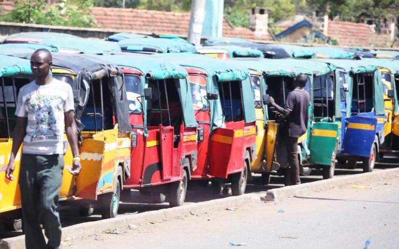 Tuk-tuks are seen parked as owners wait their turn to ferry customers. Egypt has come up with a three-year plan to phase out over three million tuk-tuks. [Collins Oduor, Standard]