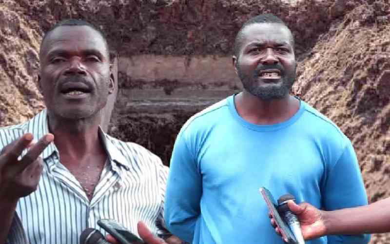 James Manyasa, husband to the deceased differed with his stepson Chrispinus Manyendo on where she should be buried. [Bernard Lusigi, Standard]
