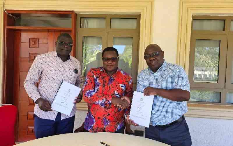 Governor Kenneth Lusaka (centre) after assenting to the Bungoma County Livestock Sale Yard Bill, 2025, on January 15, 2026. [Bernard Lusigi, Standard]