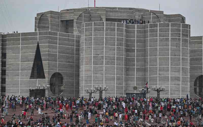 Anti-government protestors are gathering at the parliament house in Dhaka, Bangladesh, on August 5, 2024. [AFP]