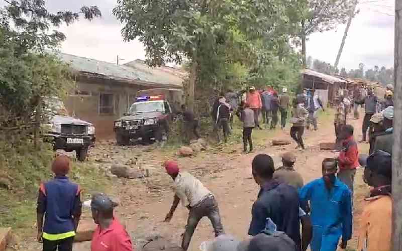 A screengrab of an angry mob pelting police with stones. [Courtesy]