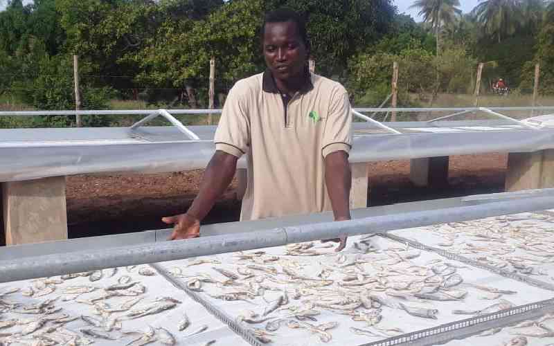 Fish preservation through a solar drying-cooling technology value addition and Quality Assurance system at Mwazaro Beach Management Unit, a self-help group in Simoni Kwale County. [File, Standard]