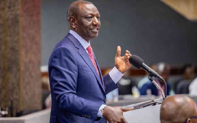 President William Ruto making his remarks at the Kenyatta International Convention Centre during the Banking Industry Inua Biashara Small And Medium Enterprise Exhibition. [PCS]
