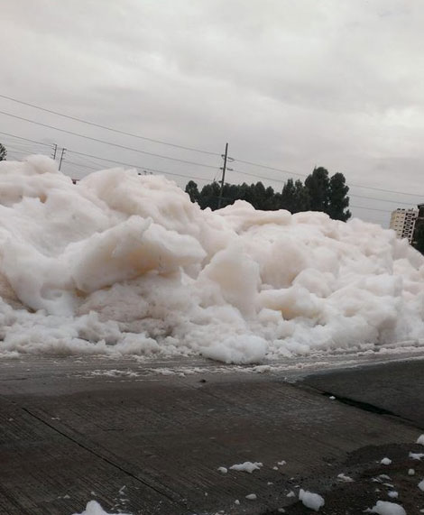Mbagathi way residents and users woke up to a surprising giant foam in the middle of the road on Saturday morning.