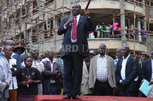 Kirinyaga Governor Joseph Ndathi addresses residents outside the upcoming Kirinyaga County headquarters in Kutus on April 7. [PHOTO:KIBATA KIHU/STANDARD]
