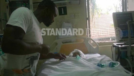 The baby is admitted at the Aga Khan Hospital's Intensive Care Unit with her tiny head swathed by a huge bandage.