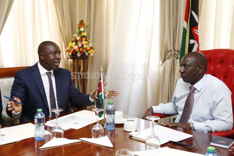 DP William Ruto (right) listens to Agriculture CS Willy Bett during a meeting on Agriculture and food security at his Karen residence office. [Photo\DPPS]
