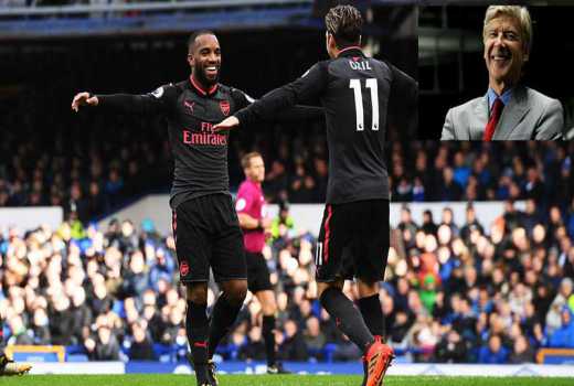 Arsenal stars Alexandre Lacazette and Mesut Ozil celebrating a goal [Photo: Courtesy]