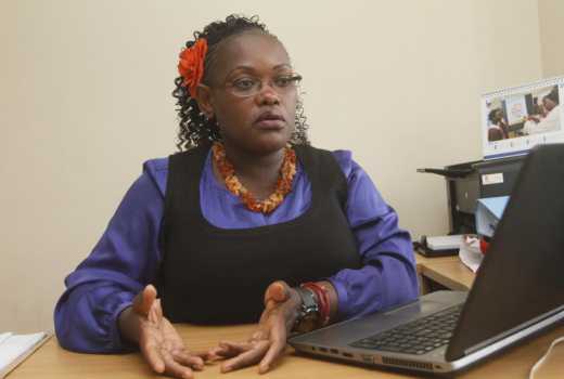 ChildHelp Kenya Executive Director Martha Suda explains how they handle situations when a child or child rescuer calls 116, and data handling during the interview at Lower Kabete ChildHekp office. on 09/03/2018(Jenipher Wachie, Standard)