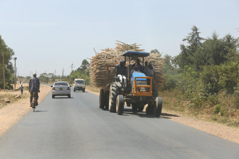 Mode of transporting cane to some of sugar firms in Western hinders other road users. [Benjamin Sakwa/Standard]
