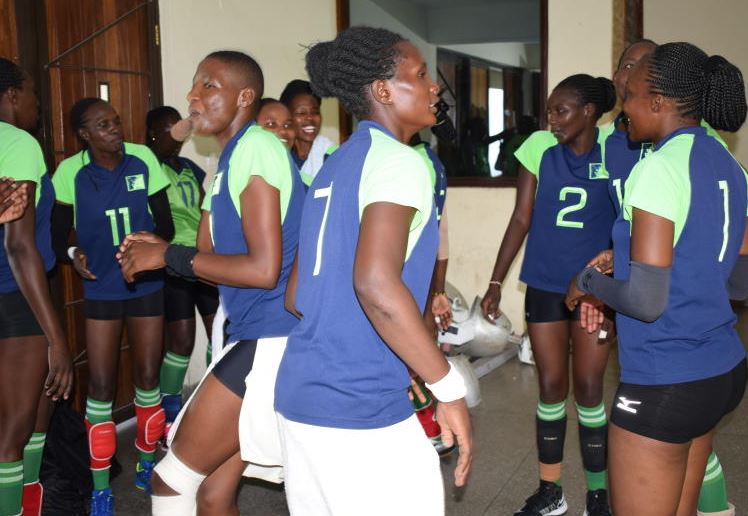 KCB Women volleyball team players celebrate a point as they played against Kenya Pipeline in one of the opening matches of the 2017 Kenya Volleyball Federation play-offs at the Makande Gymnasium.[Photo: Standard]