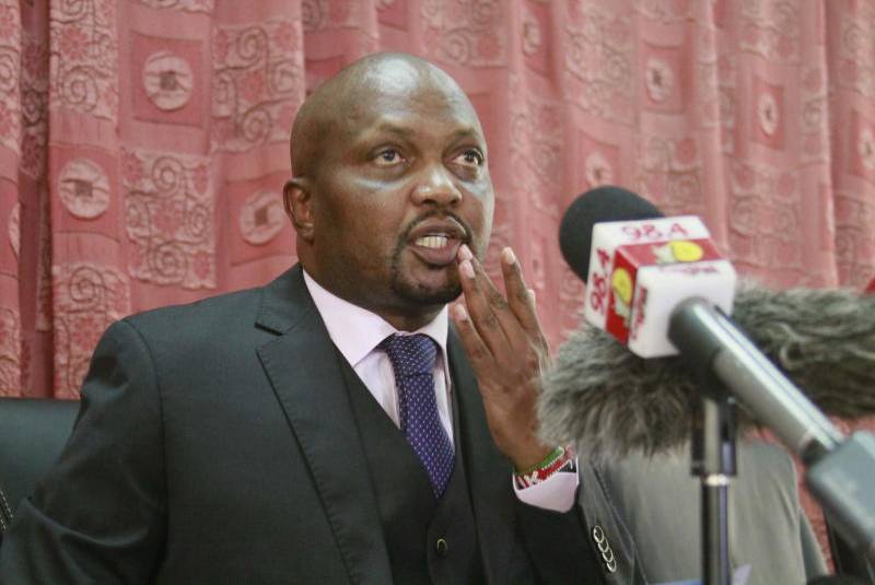 Gatundu South MP Moses Kuria addressing the media at Parliament Buildings on Thursday 10/01/19 where he apologised to the President after bashim him on Development record in Central Kenya. [Boniface Okendo,Standard]