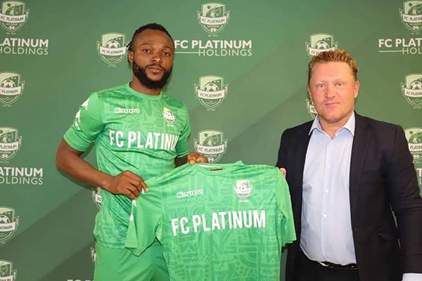 Felly Mulumba akiwa na kocha wa klabu yake mpya Henrik Pieter de Jong  Fc Platnum.Picha [Hisani]