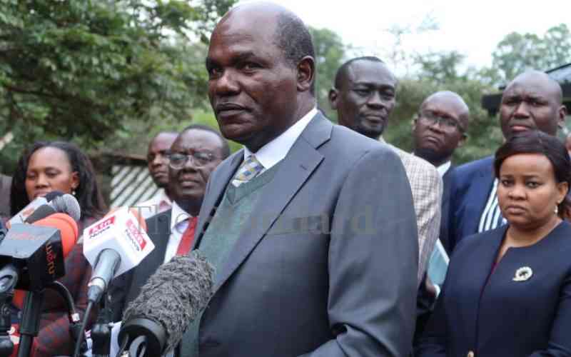 IEBC Chairman Wafula Chebukati speaks at a press briefing at the end of the meeting. [Wilberforce Okwiri, Standard]