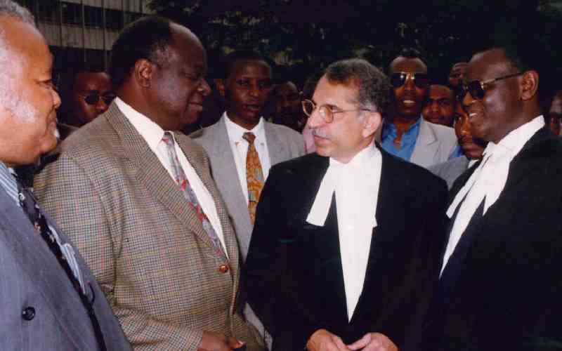 Mwai Kibaki consults with his lawyers during the presidential petition in 1998. [File, Standard]